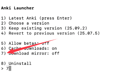 - 安装前选择更改镜像设置(选7后按回车)